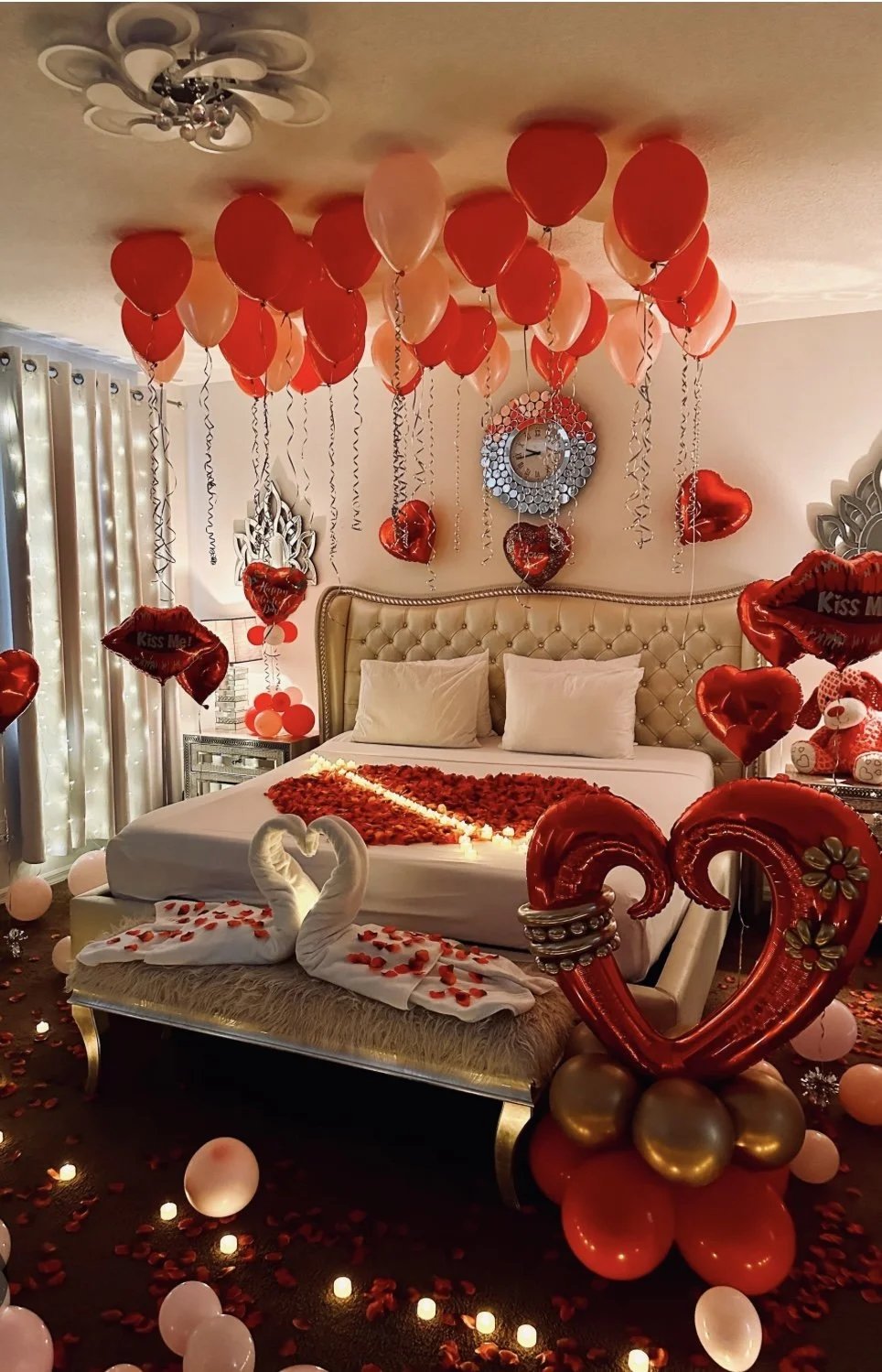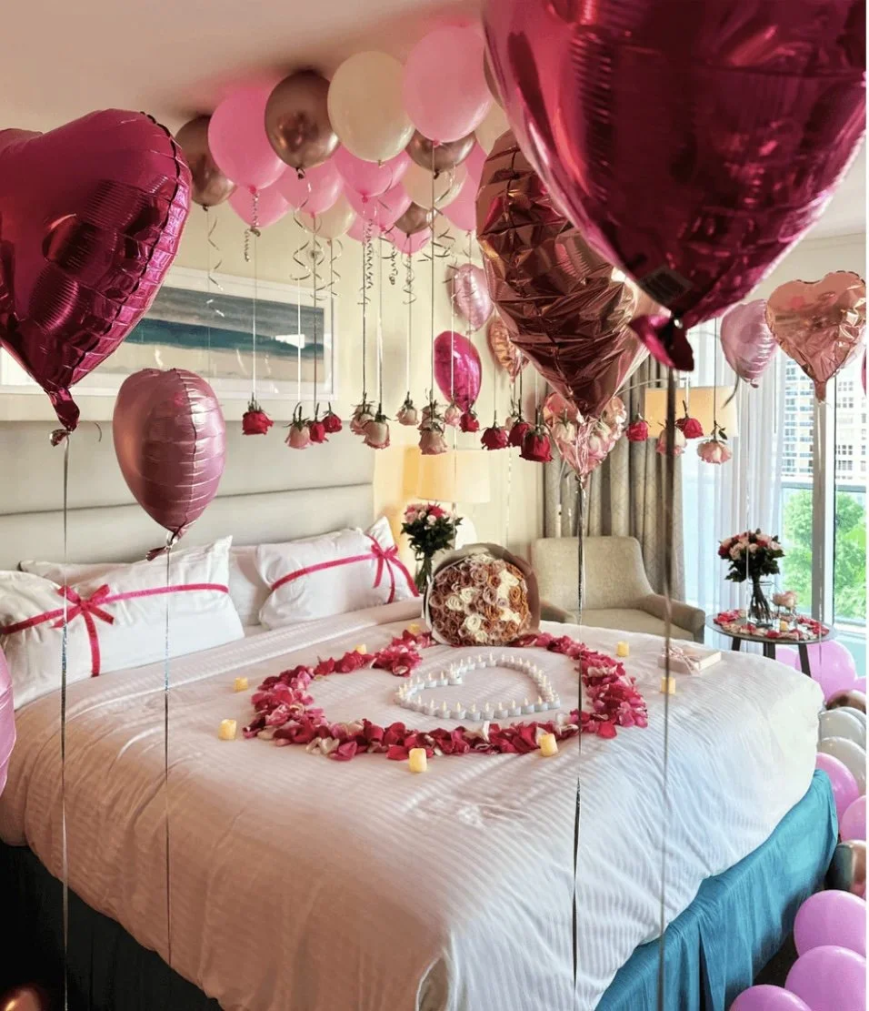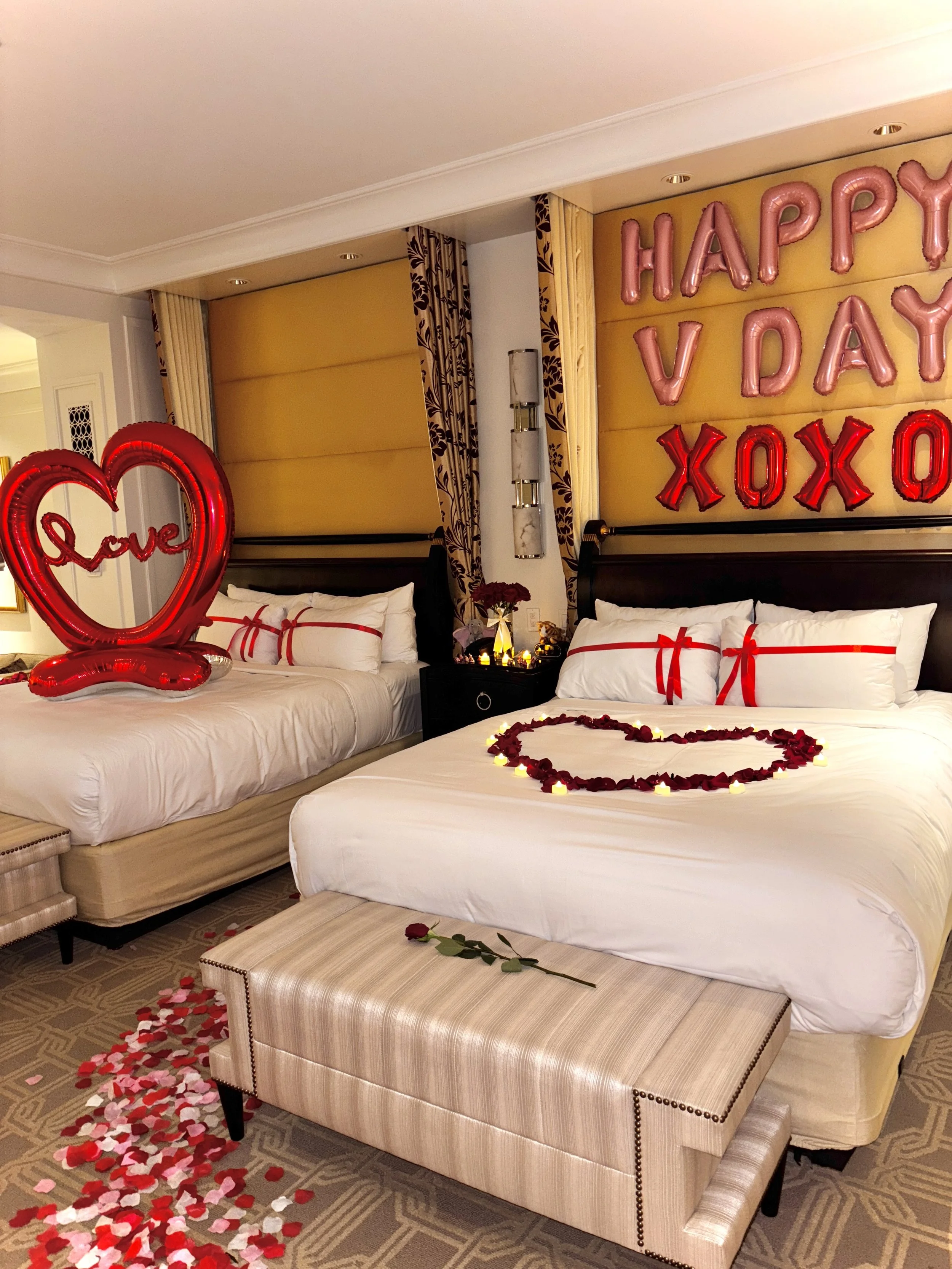 For our setup protocol, once you’ve checked into the hotel, you’ll add my name (your decorator) to the reservation. This allows me to pick up a room Key and start decorating while you are away. I’ll need at least 2 hours to complete the setup for the standard package, with additional time required for add-ons. No guest will be allowed in the hotel room while decorating for safety and time management.